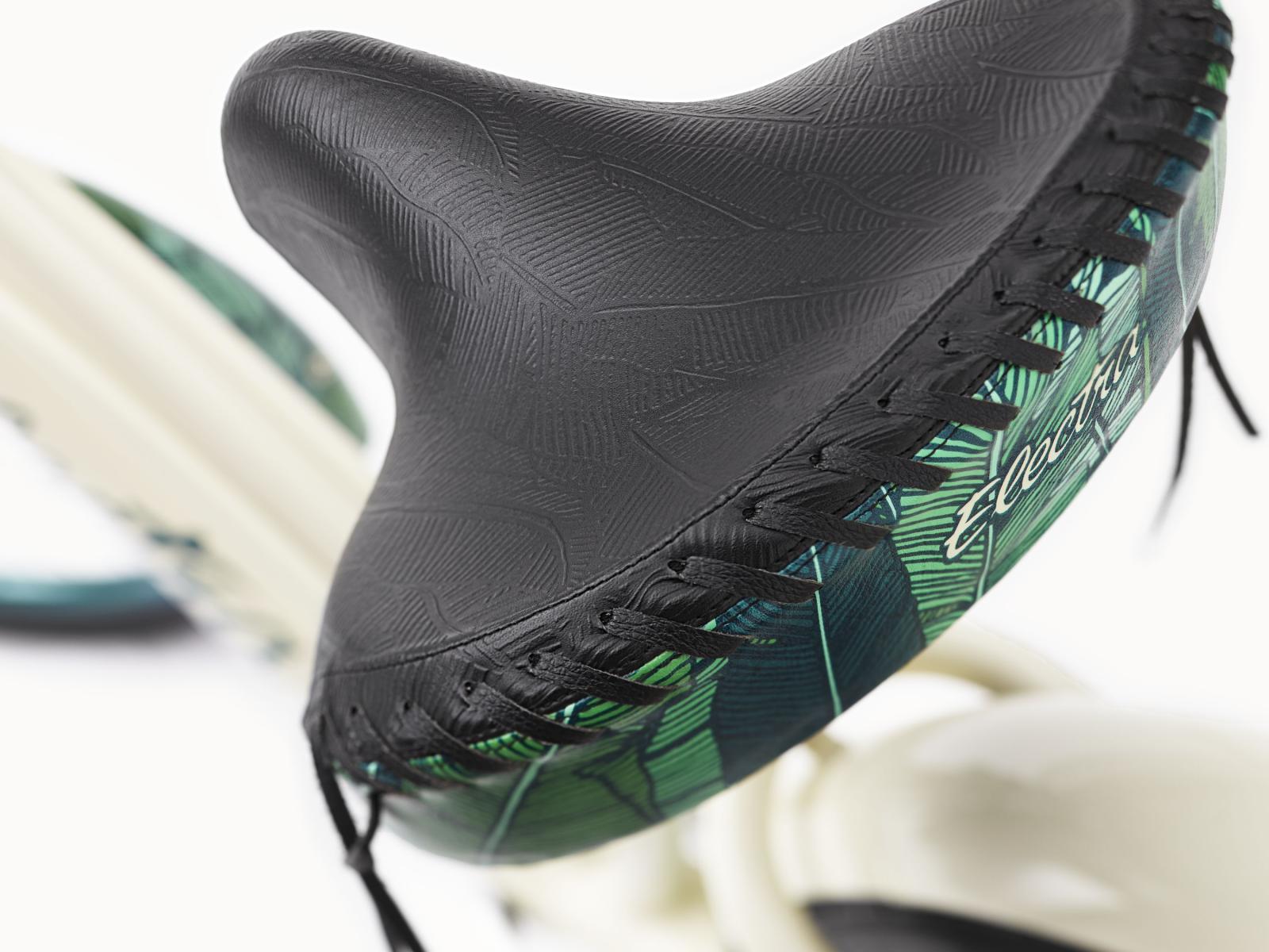 - Griffe, Sattel und Ding-Dong-Klingel mit Custom-Prägung und -Muster geben dem Bike eine lässig-luxuriöse Insel-Aura.