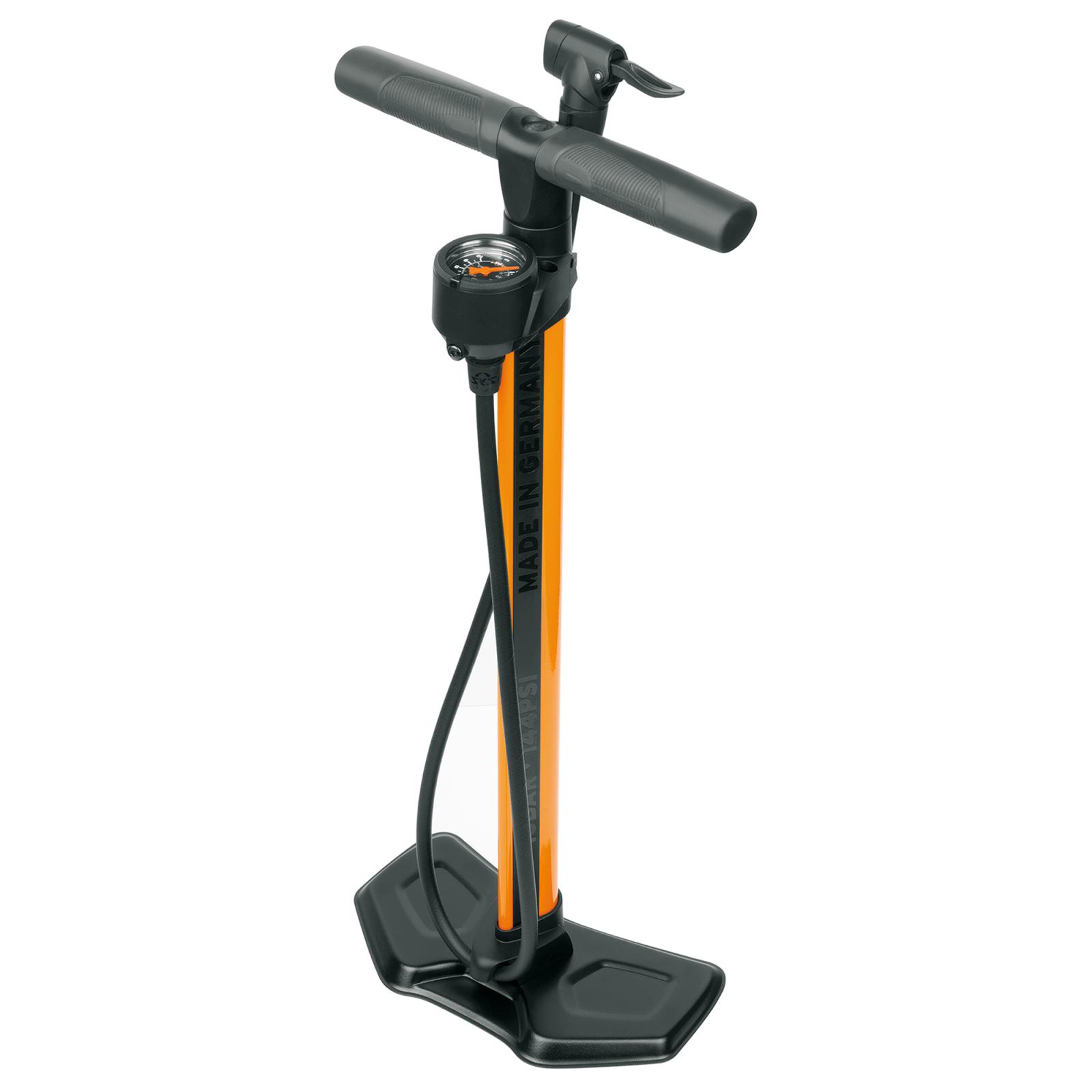 Darf in keiner Werkstatt fehlen: Die SKS Standpumpe AIRWORX 10.0 in moderner Optik. Der Soft-Touch-Griff mit Griffmulden in angenehmer Haptik erlaubt ein müheloses Pumpen bis 10 bar. Dabei garantiert der solide Metallfuß einen festen Stand und eine gute Kraftübertragung, so dass sich höhere Drücke mühelos in den Reifen pumpen lassen. Weitere benutzerfreundliche Features sind das oben liegende, gut ablesbare Präzisionsmanometer und der lange Hochdruckschlauch. Ausgestattet ist die Standpumpe mit MULTI VALVE-Kopf für alle Ventilarten sowie mit zwei Adaptern für Bälle oder Luftmatratzen.