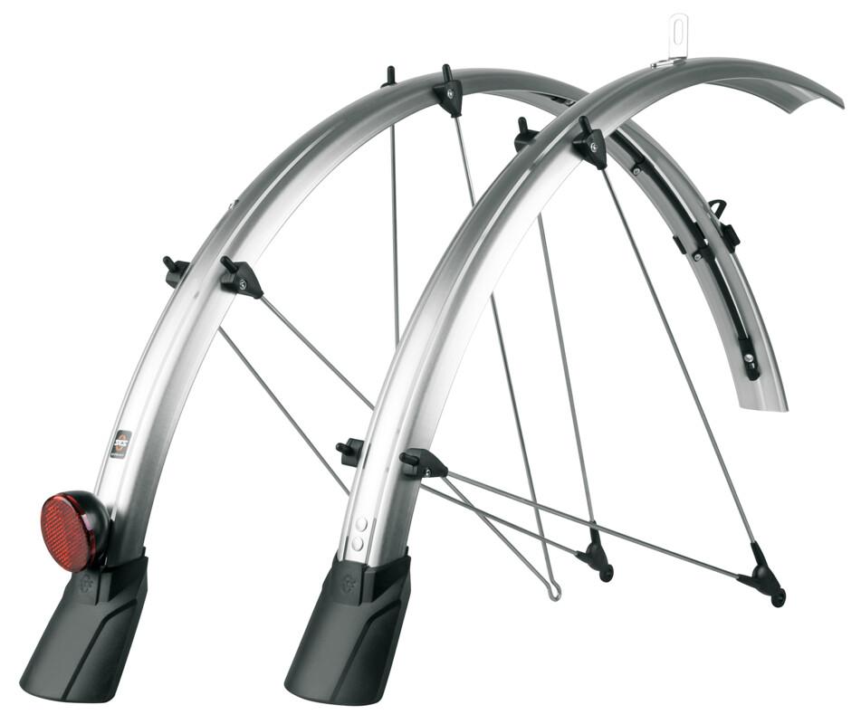Perfekt verkabelt. Das SKS Schutzblech-Set BLUEMES CABLE TUNNEL verfügt im Hinterradschutz über einen integrierten Kabelkanal, in dem sich die Verkabelung für ein Rücklicht verlegen lässt. Die Spoiler sorgen für optimalen Spritzschutz, der Reflektor für mehr Sicherheit auf der Straße. Dank der flexiblen Sandwichkonstruktion, in der hochfeine Aluminiumstreifen in einer Kunststoff-Ummantelung eingebettet werden, sind die Radschützer extrem robust, biegesteif und korrosionsgeschützt. Das ASR-Sicherheitssystem sorgt für ein Entkoppeln der Streben, wenn Zweige zwischen die Speichen gelangen, so dass das Rad nicht blockiert. Das Befestigungssystem SPB garantiert eine einfache und benutzerfreundliche Montage. Inklusive Strebensatz, Festbrücke aus Edelstahl und Montagematerial.