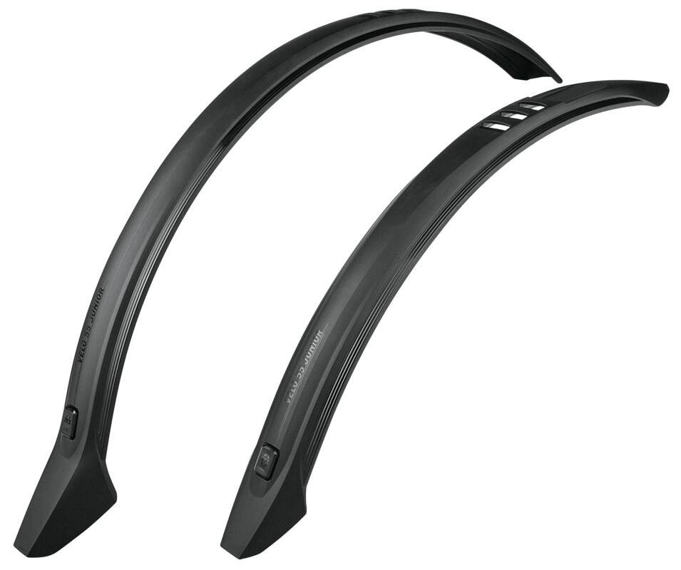 Spritzschutz für coole Kids – die SKS Schutzbleche VELO 55 JUNIOR sind die idealen Begleiter. Die Steckradschützer lassen sich mit der praktischen Universalbefestigung an fast allen Rahmenrohren anbringen. Optional sind auch Unterlaufstreben erhältlich, die mit einem ESC-Sicherheitssystem ausgestattet sind. Bestehend aus schlagfestem, schwarzem Hochleistungskunststoff mit integriertem SKS-Logo, werten die Schutzbleche das Fahrrad auch optisch auf.