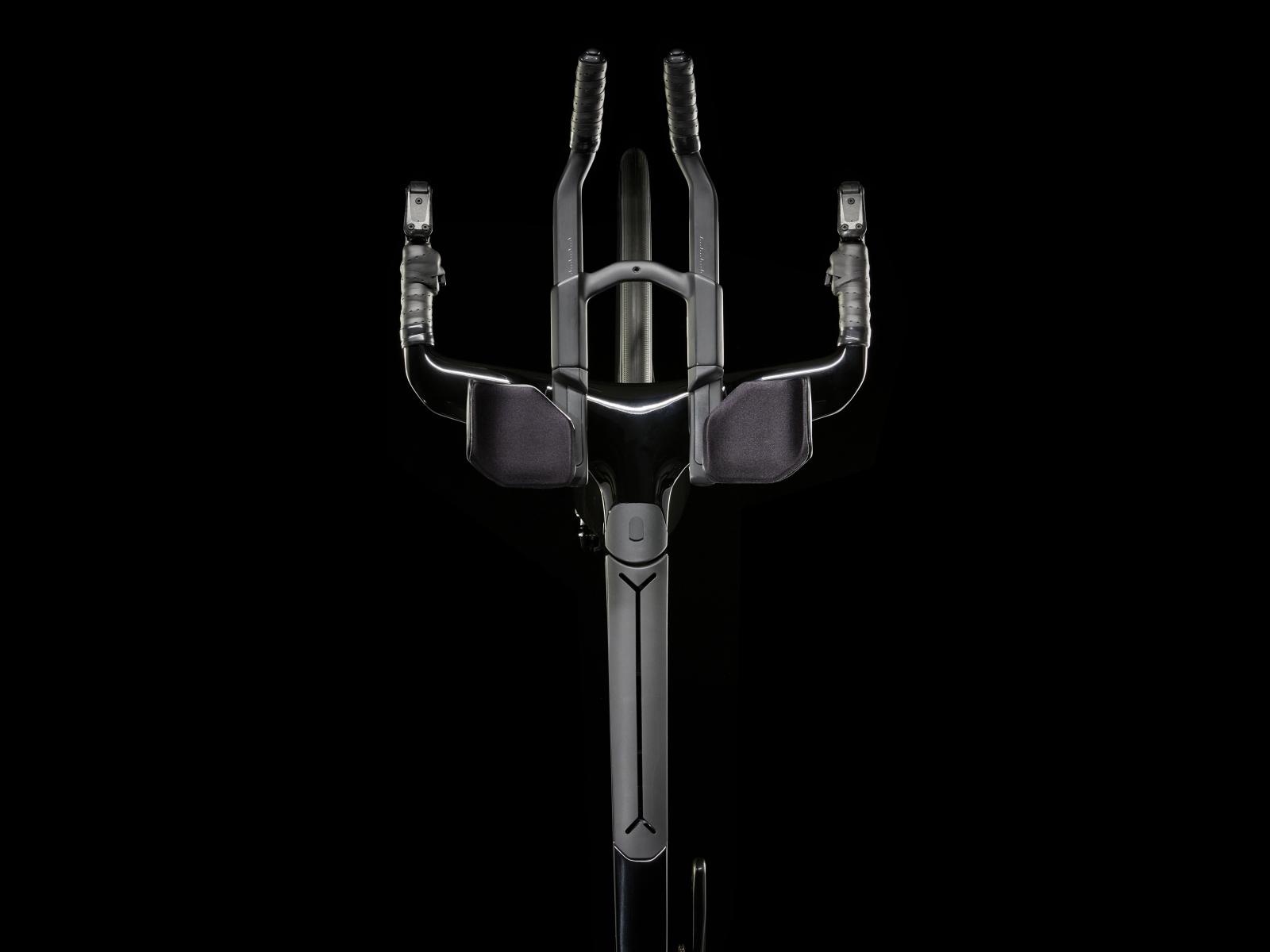 Einen ultraleichten Rahmen aus 800 Series OCLV Carbon, windschnittige Rohre mit Kammtail Virtual Foil-Profil (KVF), eine Speed Concept-Carbongabel mit aerodynamischem Profil, vibrationsdämpfendes IsoSpeed, integrierte Aufbewahrungslösungen für Verpflegung, Flüssigkeit und Pannenkit, einen drahtlosen, elektronischen SRAM Force AXS D2 12fach-Antrieb mit SRAM AXS Clics-Schalthebeln, einen SRAM Force AXS-Powermeter, einen vollständig integrierten Lenker samt Vorbau, einen triathlonspezifischen Bontrager Hilo Comp-Sattel für eine aggressive Aero-Sitzposition, Scheibenbremsen für zuverlässige Bremsleistung und Bontrager Aeolus Pro 51-
