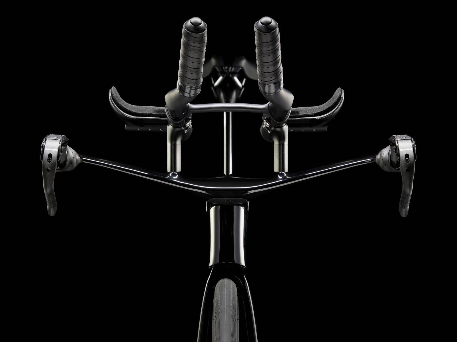 Einen ultraleichten Rahmen aus 800 Series OCLV Carbon, windschnittige Rohre mit Kammtail Virtual Foil-Profil (KVF), eine Speed Concept-Carbongabel mit aerodynamischem Profil, vibrationsdämpfendes IsoSpeed, integrierte Aufbewahrungslösungen für Verpflegung, Flüssigkeit und Pannenkit, einen drahtlosen, elektronischen SRAM Force AXS D2 12fach-Antrieb mit SRAM AXS Clics-Schalthebeln, einen SRAM Force AXS-Powermeter, einen vollständig integrierten Lenker samt Vorbau, einen triathlonspezifischen Bontrager Hilo Comp-Sattel für eine aggressive Aero-Sitzposition, Scheibenbremsen für zuverlässige Bremsleistung und Bontrager Aeolus Pro 51-