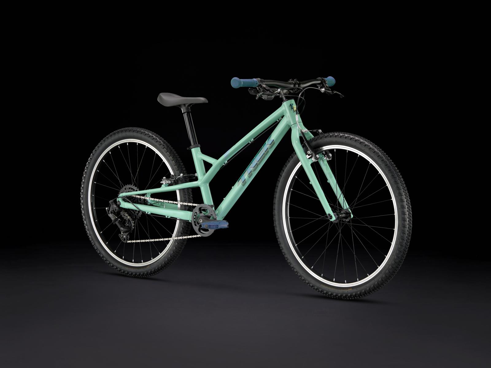 Einen Rahmen aus Alpha Silver Aluminium mit 24 Zoll großen Laufrädern und 2 Zoll breiten Reifen, die für Grip und Geschwindigkeit auf Asphalt konzipiert sind. Dazu gibt es eine speziell auf Kinderbedürfnisse zugeschnittene Ausstattung, wie etwa die intuitive 8-Gang-Schaltung von microSHIFT und unkomplizierte Felgenbremsen samt kindgerechten Bremshebeln.