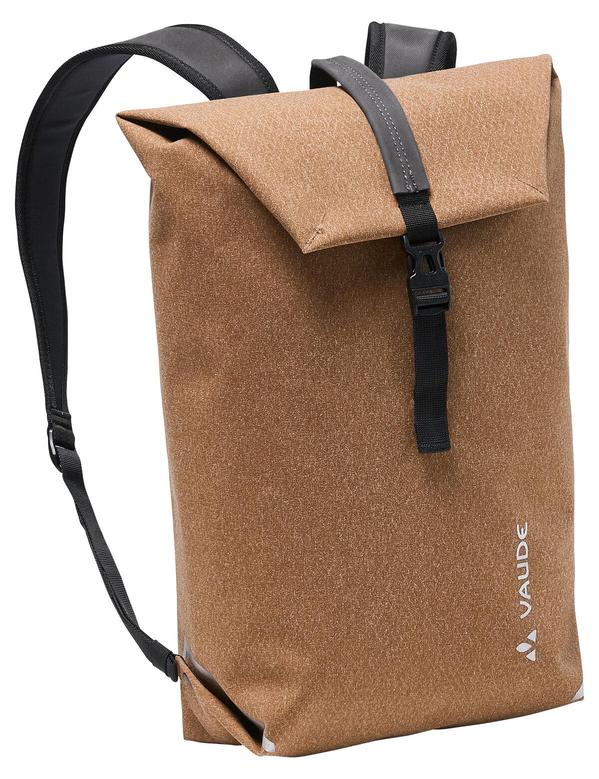 Klassischer Look aus modernsten, nachhaltigen Materialien: der Kisslegg aus der VAUDE Manufaktur, Made in Germany. Die ergonomisch geformten Schulterträger wurden aus einer Kombination aus nachhaltigem terracare® Leder und natürlichem Stoff aus Hanf und Bio-Baumwolle erstellt. Der Rucksack selbst besteht aus einem robusten, wasserdichten und schmutzabweisenden Material in textiler Optik, hat dekoraktive reflektierende Aufdrucke, einen Deckelgriff und ein gut erreichbares, außenliegendes Reißverschlussfach für Handy und Geldbeutel. Der herausnehmbare, wattierte Organizer im Innenfach verstaut sicher und übersichtlich Tablet, Stifte und Unterlagen; im Hauptfach mit 10 l Volumen finden A4 Unterlagen und der kleine Einkauf locker Platz und trotzdem ist der Schlüssel durch den leicht erreichbaren Schlüsselhalter immer schnell griffbereit. Das VAUDE Green Shape-Label steht für ein umweltfreundliches, funktionelles Produkt aus nachhaltigen Materialien. Ein kleines Meisterstück aus unserer VAUDE Manufaktur, das seinem Besitzer viele Jahre lang ein Lächeln ins Gesicht zaubert.