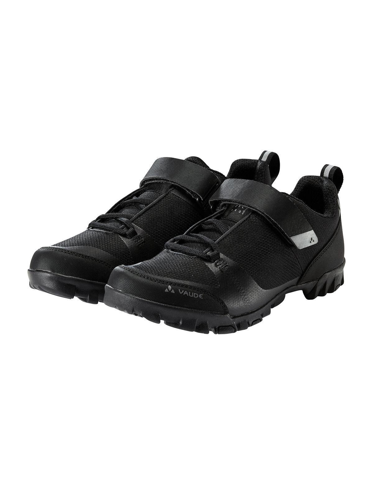 Dieser schicke und durchdachte Fahrradschuh ist das ganze Jahr über der perfekte Begleiter für Radreisen oder Tagestouren auf dem Rad. Der stylishe Bikeschuh punktet in Sachen Nachhaltigkeit: Das strapazierfähige Obermaterial besteht zu 100 % aus recyceltem Polyester; auch das atmungsaktive Innenfutter ist aus überwiegend recyceltem Material gefertigt. Bei anstrengenderen Etappen sorgt das Meshmaterial des umweltfreundlichen Radschuhs für ausreichende Belüftung der Füße. Das Schnür-Klettsystem kann nach Wunsch fester oder lockerer eingestellt werden kann und sorgt zudem für perfekten Halt. Die vorgeformten Zehen- und Fersenkappen geben Stabilität und zusätzlichen Abriebschutz. Mit der innovativen SUPtraction® R20 Sohle aus 20 % recyceltem Gummi hat der Radschuh ein griffiges Profil, ist aber auch für Spaziergänge nach der Radtour geeignet. Die mittlere Steifigkeit (V-Flow 5) sorgt sowohl für eine effiziente Kraftübertragung auf dem Pedal als auch für einen hohen Gehkomfort. Die abnehmbare Cleatabdeckung ist mit gängigen SPD-Klicksystemen kompatibel. Der Radschuh wurde mit Eco Finish PFC-frei wasser- und schmutzabweisend ausgerüstet, damit auch Spritzwasser keine nassen Füße macht. Das VAUDE Green Shape-Label steht für ein umweltfreundliches, funktionelles Produkt aus nachhaltigen Materialien.